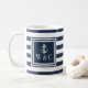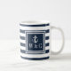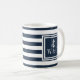 Caneca De Café Monograma Faixa Azul Marinho Náutico Âncora de Bar