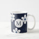 Caneca De Café Monograma Floral Bonito Azul marinho