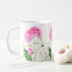 Caneca De Café Monograma Ilustrado Peônia Rosa & Margarida