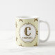 Este monograma de chá matinal ou caneca de café é uma forma excelente de criar um toque especial para a sua manhã. Um padrão de estrela dourada aparece contra um fundo bege. Seu monograma é apresentado em fonte dourada ocidental junto com o nome da família. Personalize facilmente as cores e o monograma inicial para se adequar ao seu desejo. Design original - C. McGouldrick