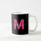 Personalizado Moderno Cor-De-Rosa Elegante E Script Preto Nome Monograma Inicial De Café. Esta caneca feminina e chica traz um toque na moda, pessoal a qualquer coleção de café ou amantes do chá. Apresentando uma inicial magenta escura, cor-de-rosa, sobre um fundo preto elegante com um nome de escrita branco delicado, o monograma é apresentado em ambos os lados, acrescentando um aspecto personalizado de destaque a partir de cada ângulo. Criada com uma vibração moderna e minimalista, esta caneca faz um presente pensativo para aniversários, exércitos domésticos, feriados, ou apenas por causa disso. É também uma escolha perfeita para chás de panela, festas de solteira, ou ofertas no dia do casamento, combinando sofisticação clássica com tendências, encanto feminino.