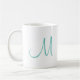 Caneca De Café Monograma Inicial do Teal Branco Elegante Moderno