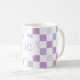 Monograma Verificado Purple Simple Coffee Mug apresenta um padrão ousado e na moda de tabuleiro em tons de roxo e lavanda. O clássico design geométrico, aliado a um monograma personalizado, adiciona um toque moderno à sua rotina cafeeira. Perfeito para uso diário ou como presente de aniversário pensativo para ela, esta caneca combina o estilo de pré-disquete com elegância de eterno, fazer-o como uma adição divertida e exclusiva para qualquer cozinha. 🦋 Você pode personalizar facilmente o produto adicionando suas iniciais para torná-lo completamente exclusivo. Você também pode alterar a cor do plano de fundo e a fonte ao seu gosto abrindo "Personalizar este modelo" > "Editar usando a Ferramenta Design".