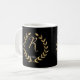 "Monograma - Letra R Preta n Dourada Script Name Coffee Mu."  A coroa de folhas de ouro moderna, mas clássica, com o seu monograma de escrita manual, letra de alfabeto R em brilho dourado.  Personalize o seu primeiro ou sobrenome desejado.  Arte de Audrey Jeanne Roberts, artista licenciada internacionalmente, copyright.