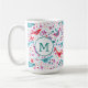 Caneca De Café Monograma - Pássaro Floral Watercolor