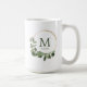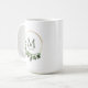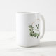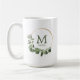 Dê-nos um presente de Natal ou faça um para você mesmo, personalize esta caneca de Natal com seu nome e inicial, monograma com uma fonte serif moderna. Apresentando minha metade moderna de ouro de coroa com verde e flores brancas.