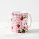 Caneca De Café Monograma Personalizado Russo Red Gingham Strawber