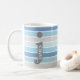 Caneca De Café Monograma Personalizado 'Tons de Azul' Listrado
