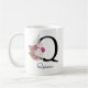 Caneca De Café Monograma Rosa Boho Menina Floral Inicial Q