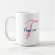 Caneca De Café Monograma Rosa Personalizado - Letra T Nome Person