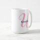 Caneca De Café Monograma Rosa Personalizado - Letra U Nome Person