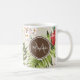 Uma caneca exótica de padrão floral de abacaxi tropical que pode ser personalizada. Adicione seu nome e monograma inicial ao crachá de hexágono arredondado castanho escuro para torná-lo exclusivamente seu. Esta é parte da Coleção de Monogramas do Imperador Floral de Abacaxi Tropical.