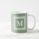 Este design Na moda moderno apresenta um quadro quadrado de linha branca dupla sobre um fundo verde de sábio bonito e um monograma em uma fonte elegante. Mude a inicial para a sua. Você pode personalizar este design alterando a fonte, tornando o branco transparente e escolhendo uma cor diferente. Perfeito para casamentos e reuniões