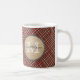Caneca De Café Monograma vermelho do fundo da xadrez