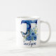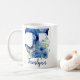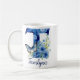 Uma caneca de café personalizada em tons de azul com borboleta coordenada, apresentando o monograma da letra "T". Personalize facilmente com seu nome ou crie um presente único para seus entes queridos. Espaço suficiente para adicionar uma citação ou mensagem adicional ou até mesmo um fundo. Esta caneca também vem em diferentes estilos e combinações de cores. Navegue pela coleção para ver exemplos deste tipo de fonte nos diferentes estilos e tamanhos de xícara.