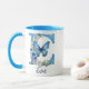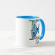 Uma caneca de café personalizada em tons de azul com borboleta coordenada, apresentando o monograma da letra "E". Personalize facilmente com seu nome ou crie um presente único para seus entes queridos. Espaço suficiente para adicionar uma citação ou mensagem adicional ou até mesmo um fundo. Esta caneca também vem em diferentes estilos e combinações de cores. Navegue pela coleção para ver exemplos deste tipo de fonte nos diferentes estilos e tamanhos de xícara.