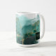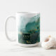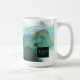 Seus sonhos estão finalmente se tornando realidade e este design abstrato de tinta alcoólica que flui define o tom perfeito para o maravilhoso casamento que você sempre imaginou. Em tons de verde-vidro marinho a esmeralda escura, acentuados com ouro brilhante, o design de caneca de café aqui mostrado fornece uma modelo para adicionar facilmente suas iniciais e a data do casamento. Procure ID988 para ver outras peças neste conjunto de casamento coordenado.