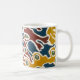 Caneca branca decorada com um padrão de algas impresso na tela.