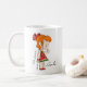 Uma caneca de cerâmica com uma ilustração fofa de uma garota com cabelo vermelho em um vestido de melancia. Um design brilhante e divertido que adiciona alegria ao seu chá matinal ou café