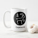 Capricórnio - Sinais do Zodíaco - 22 de dezembro a 20 de janeiro. Representação gráfica de uma cabra e de árvores num círculo negro.