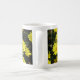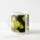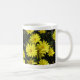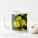 Margaridas amarelas com centros laranja no fundo da folhagem escura, adornam cada lado da caneca. Personalize com o nome do usuário.