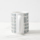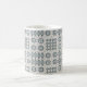 Uma caneca branca de café, com um padrão de motins tradicionais de mosaico galês em Cinzas escuras em um fundo de areia. Este padrão irá ajustado todos os tamanhos de Mug.