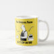 Cartoon de serviços elétricos numa caneca. Adicione o nome da sua empresa e o número de telefone. Ideal para eletricistas e qualquer pessoa que trabalhe em serviços elétricos. Fundo amarelo.