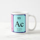 Isac soletrado como I S Ac (Íodino Sulfur Actinium) numa caneca para o cientista em você.