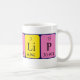 Philip soletrou como P H I Li P (Hidrogênio Fósforo, Fósforo de lítio) numa caneca para o cientista em você.