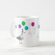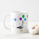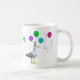 Uma gaivota vestindo uma festa cercada por balões e navios a vapor. Esta caneca divertida seria excelente para um aniversário, formatura ou qualquer celebração.