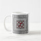 Esse quadrado concêntrico apresenta padrões geométricos simples em tons de cinza e vermelho com as cores nas camadas alternadas ao passar da vertical para a horizontal. Estão disponíveis outras cores e estilos de caneca, incluindo canecas de viagem e canecas de cerveja.