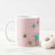 Este padrão Icônico Rosa Icônico de Starbursts Atômicos Mug apresenta explosões atômicas icônicas. Isso mesmo! A antiga escola, o fundo colorido de primeira-dama cor-de-rosa com manchas de ouro é o pano de fundo perfeito para a vibrante turquesa, o aipo de salga e os círculos verdes cor de pera da cozinha. As manchas de cor são colocadas esporadicamente em vários tamanhos com linhas pretas em forma de V sobrepostas para formar as estórias do mod sputnik. Estimulado após um padrão prato de 1950, este design retrorinspirado tem tudo o que você precisa para ser verdadeiramente meio século moderno.