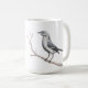 Mug personalizável de 15 oz com imagem de um Mockingbird estatal do Texas completada em Lápis Colorido e um verso de Escrituras inspirador.