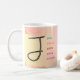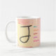 Esta caneca será uma favorita para todos, da sua doce avó para a sua irmã adolescente. Com a mensagem certa, uma caneca pode tornar-se o precioso companheiro de qualquer um por anos. Esta design apresenta uma bela letra desenhada à mão "J" em cursivo preto sobre um fundo de aquarela impressionante. O lado esquerdo exibe um gradiente amarelo-a-rosa quente, enquanto o lado direito exibe um gradiente rosa-a-amarelo macio. Ao redor da letra estão palavras vibrantes em várias cores, incluindo azul, laranja, vermelho, roxo e rosa, destacando traços positivos a partir da letra "J". O efeito geral é um design visualmente atraente e elevador que celebra a beleza da letra "J" e suas qualidades associadas. O fundo de aquarela adiciona um toque de elegância e sofisticação, fazer esse design perfeito para propósitos inspiracionais ou motivacionais.