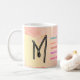 Esta caneca será uma favorita para todos, da sua doce avó para a sua irmã adolescente. Com a mensagem certa, uma caneca pode tornar-se o precioso companheiro de qualquer um por anos. Esta design apresenta uma bela letra desenhada à mão "M" em cursivo preto sobre um fundo de aquarela impressionante. O lado esquerdo exibe um gradiente amarelo-a-rosa quente, enquanto o lado direito exibe um gradiente rosa-a-amarelo macio. Ao redor da letra estão palavras vibrantes em várias cores, incluindo azul, laranja, vermelho, roxo e rosa, destacando traços positivos a partir da letra "M". O efeito geral é um design visualmente atraente e elevador que celebra a beleza da letra "M" e suas qualidades associadas. O fundo de aquarela adiciona um toque de elegância e sofisticação, fazer esse design perfeito para propósitos inspiracionais ou motivacionais.