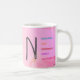Esta caneca será uma favorita para todos, da sua doce avó para a sua irmã adolescente. Com a mensagem certa, uma caneca pode tornar-se o precioso companheiro de qualquer um por anos. Esta design apresenta uma bela letra desenhada à mão "N" em cursivo preto sobre um fundo de aquarela impressionante. O lado esquerdo exibe um gradiente amarelo-a-rosa quente, enquanto o lado direito exibe um gradiente rosa-a-amarelo macio. Ao redor da letra estão palavras vibrantes em várias cores, incluindo azul, laranja, vermelho, roxo e rosa, destacando traços positivos a partir da letra "N". O efeito geral é uma design visualmente atraente e elevadora que celebra a beleza da letra "N" e suas qualidades associadas. O fundo de aquarela adiciona um toque de elegância e sofisticação, fazer esse design perfeito para propósitos inspiracionais ou motivacionais.