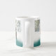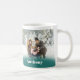 Adicione suas próprias fotos para criar um presente personalizado especial. Esta caneca pode ser personalizada com duas fotos. Há um lugar para adicionar um do lado esquerdo e outro à direita. Abaixo de cada foto está um ponto para adicionar seu próprio texto em letras brancas de marfim, antigas e em negrito, contra uma camada de teal escura.