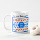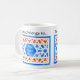Uma bonito caneca branca com um padrão tradicional de crellis islâmica em azul, laranja e branco, para trás e para a frente. O texto ao redor da borda diz, "Esta caneca pertence a..." em letras negras e há um painel no meio da design onde você pode colocar o nome que você precisa. Esta design foi pintada por Judy Adamson.