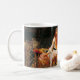 Café Mug com a pintura a óleo de John William Waterhouse The Lady of Shalott (1888). Uma bela mulher de vestido branco escapa num barco do seu destino olhar para todo o mundo através de um espelho e tecer uma tapeçaria dele — mas ao ver o Príncipe Lancelot, a maldição segue a Senhora de Shalott até ao seu fim. As cores brilhantes do outono pintam esta cena trágica. Um presente inspirador para os entusiastas de Arthuriana e os coletores de pré-raphaelite.