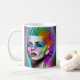 Caneca De Café Mulher Distópica com Mohawk Arco-Íris Abstrato Mod