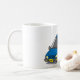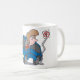 Uma mulher em um acidente de carro agora parada ao lado do carro. Esta design parece realmente eficaz nesta Mug