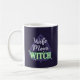 Esposa. Mãe. Bruxa! Uma citação de halloween em verde roxo e mágico. Uma design de bruxa engraçada para mães e múmias brutas em bruxaria. Não se esqueça da vovó e daqueles que estão criando um novo bebê também! Vire a caneca e verá um nome e monograma personalizáveis! Não se esqueça de editá-lo!