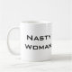 Beba sua bebida quente favorita enquanto mostra orgulhosamente sua atitude rebelde com uma caneca personalizada que diz: "Mulher Desagradável" em texto negro. Outros estilos de caneca estão disponíveis na barra lateral. Para ver a design Nasty Woman em outros itens, clique no link de loja "Rocklawn Arts" abaixo.