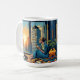 Caneca De Café Mulher observando o nascer do sol com seu gato