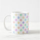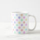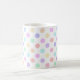 Apresenta um padrão divertido de pontos multicolores em um fundo branco.