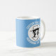 My Face on a custom Mug, 11 oz., 3.2" diameter x 3.8" high, with MACHESTER CITY BLUE (Powder Blue) #6CADDF background and COLLEGE text font. (A combo mug has black, hunter green, maroon, navy blue or yellow handle + inside). Custom photo and personalized text template with two individually customized design areas (see store for more background colors, font styles, and alternative template options).