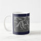 The Mug features a calm design in dark blue tone. An athletic man performs an intense spinning workout on an indoor bike. Focused and full of energy, he trains endurance and cardio in a modern gym environment.