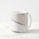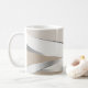 Elegante Prata Metálica Beige e Ondas Brancas Café Mug Comece seu dia com esta caneca de café que chama a atenção, apresentando um sofisticado design de onda metálica prateada em um fundo bege neutro. Um na moda adicional à sua rotina matinal. #caneca de café moderna, #caneca de prata metálica, #caneca de design abstrata, #caneca de bege elegante, #caneca de manhã contemporânea, #caneca de bebida única