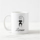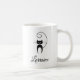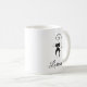 Mug mostra uma silhueta de um gato preto, parado com cauda ondulada acima da cabeça do gato. Personalize e personalize o nome mostrado abaixo do gato em uma fonte de script elegante. Felino bonito, na moda, moderno e legal para amantes de gatos, amantes de os animais, veterinários, crianças, namoradas, mães. Faz um presente de excelente.