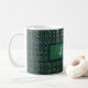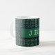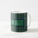 A caneca de café na moda apresenta um padrão azul / verde de "Tweed" de Oxford com um monograma personalizável no centro.